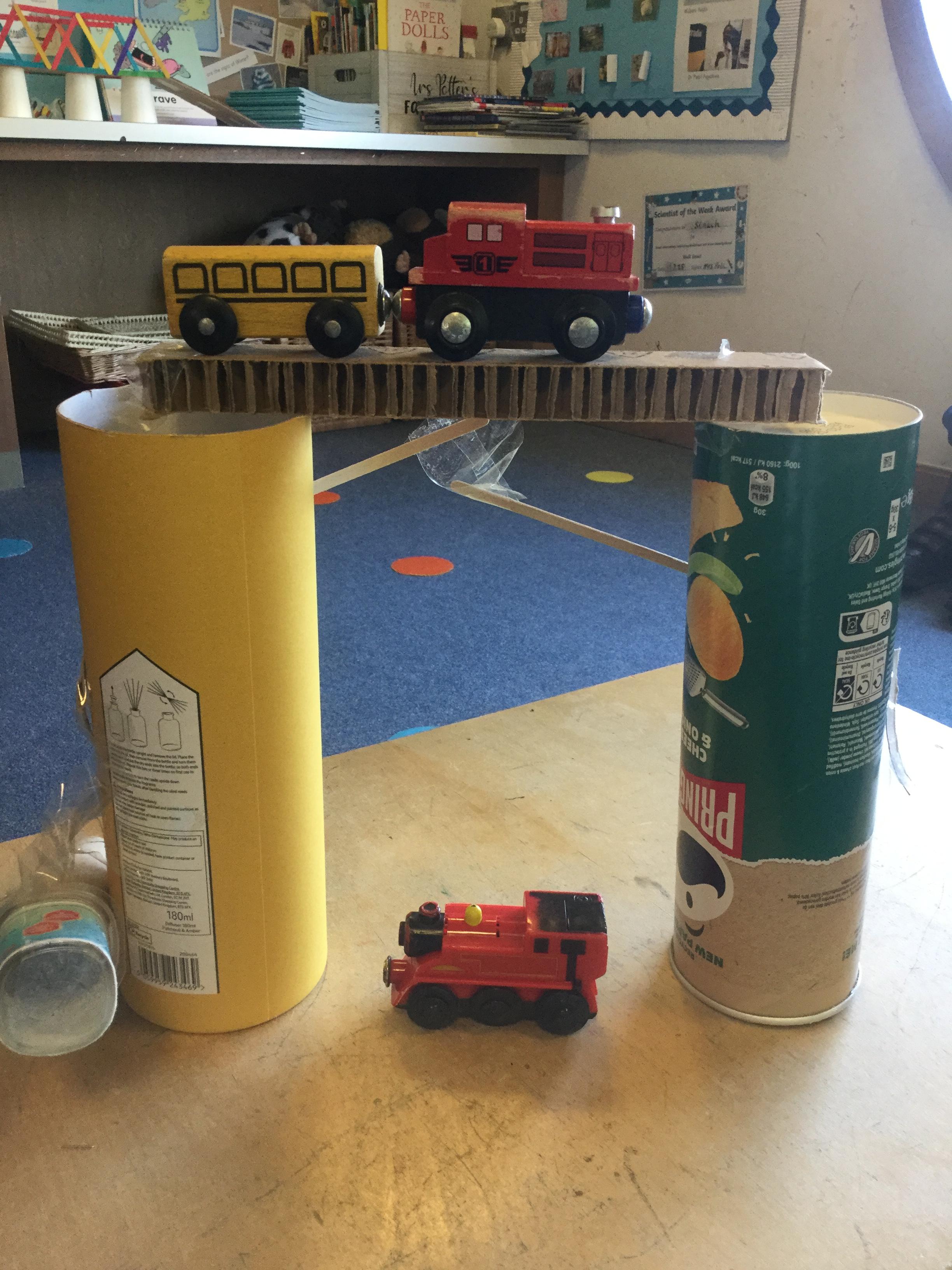 The children then brought their designs to life by constructing their own bridges. In the following DT lesson, they tested their creations to see if they met the design brief: to support the weight of a toy train. Many bridges held one train—and some even supported two or more! The children then evaluated their work, reflecting on the effectiveness of their joining techniques.
