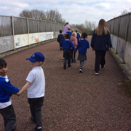As part of the unit, we also took a walk around Shenley Church End to observe local bridges and underpasses. This outing provided a valuable real-world context for their learning and also allowed us to spot signs of spring—one child even counted 25 blossom trees!