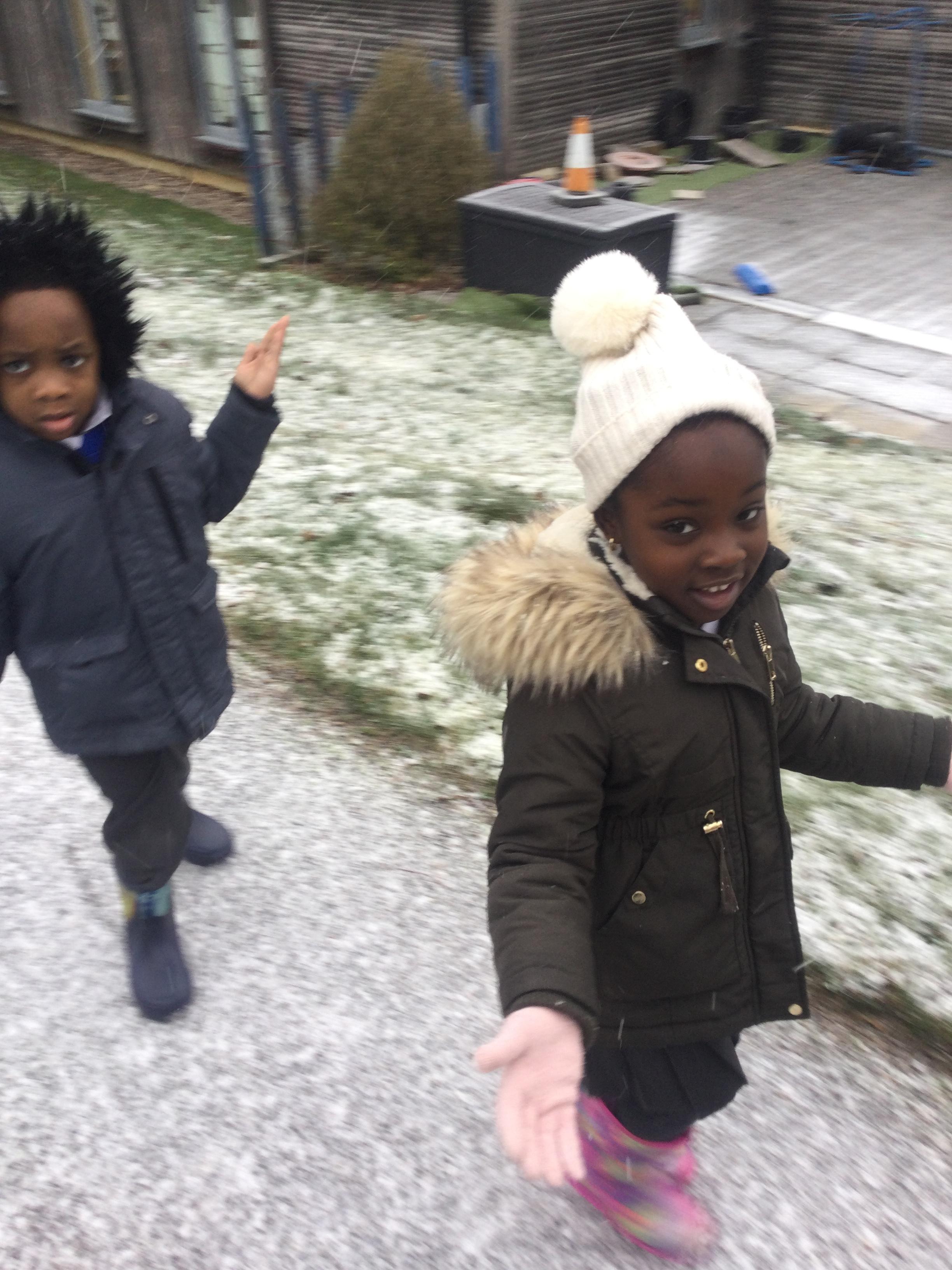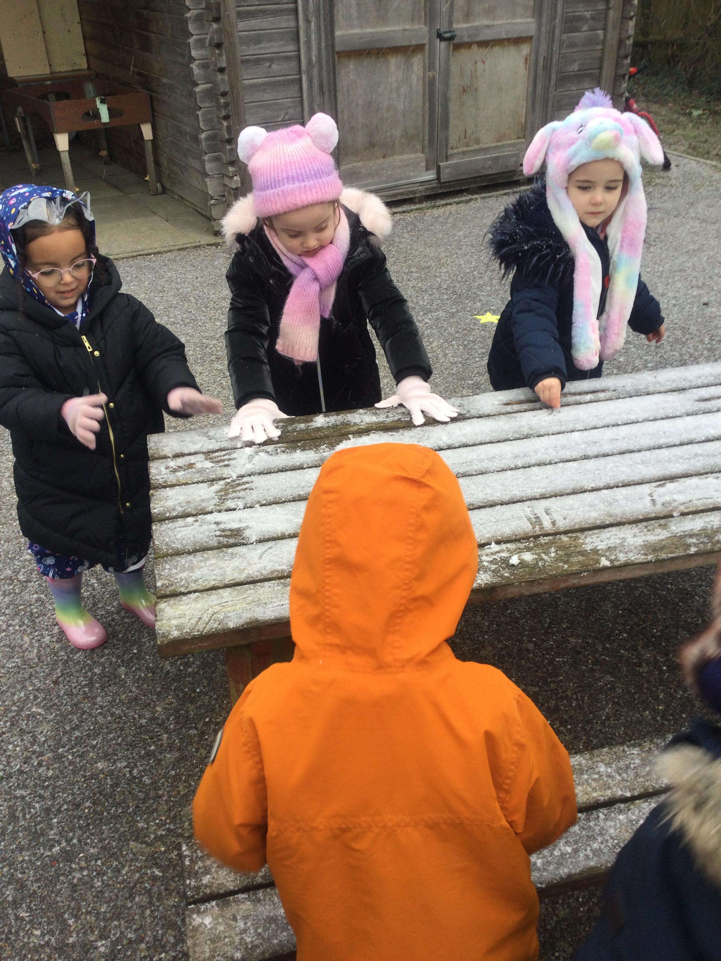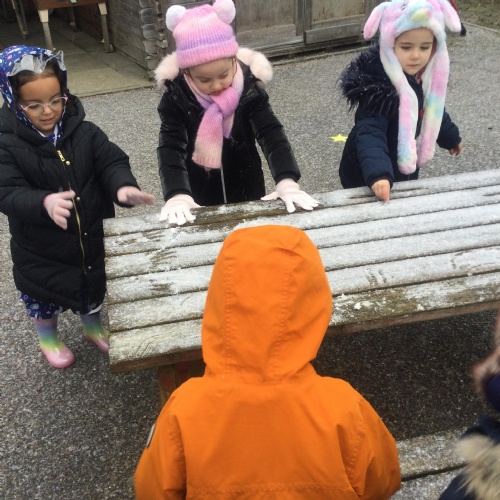 Wow, what an amazing learning opportunity we were presented with when we had a change in the weather! We all woke up to a very frosty day and we were so happy to see during our school day that the snow started to fall. We discussed the changes in the weather and the conditions of ice and snow it produced. We talked about the clothes we need to wear during Winter as we will be out in the cold weather and took the opportunity to go outside and experience the snow first hand. We enjoyed touching the snow, feeling the cold weather on our skin and tasting it by holding our tongues out upward to the sky as the snow was falling. We identified how the snow melted when it got warm in our hands and how it was slowly melting as the sun was coming out.