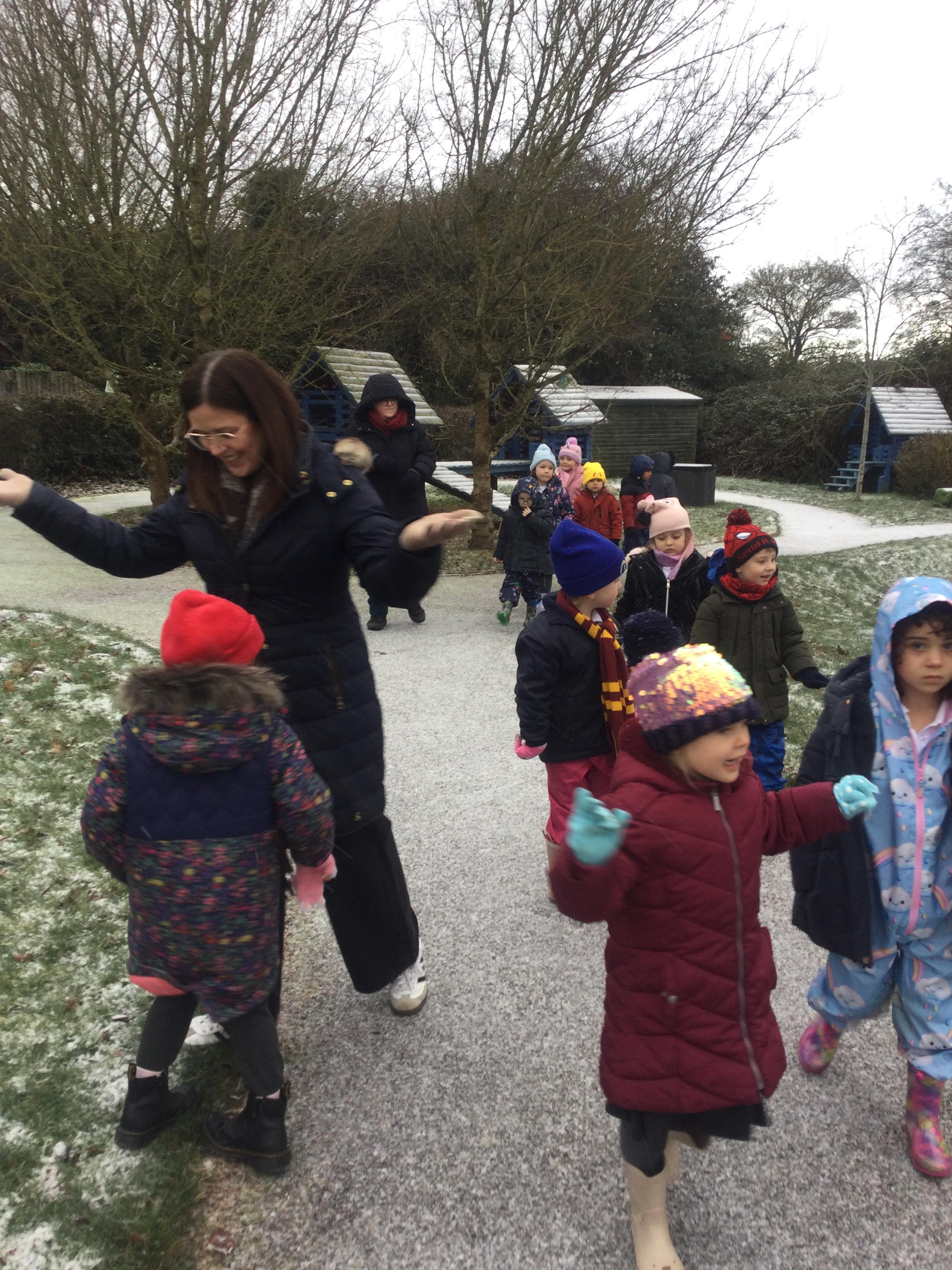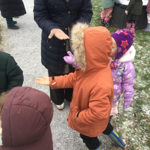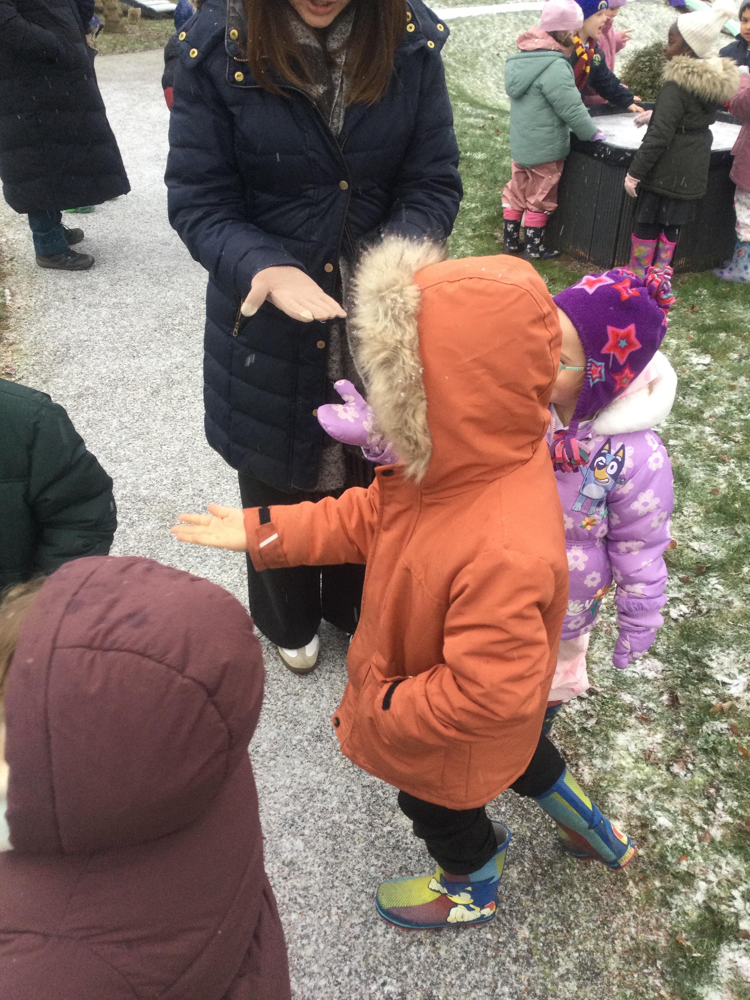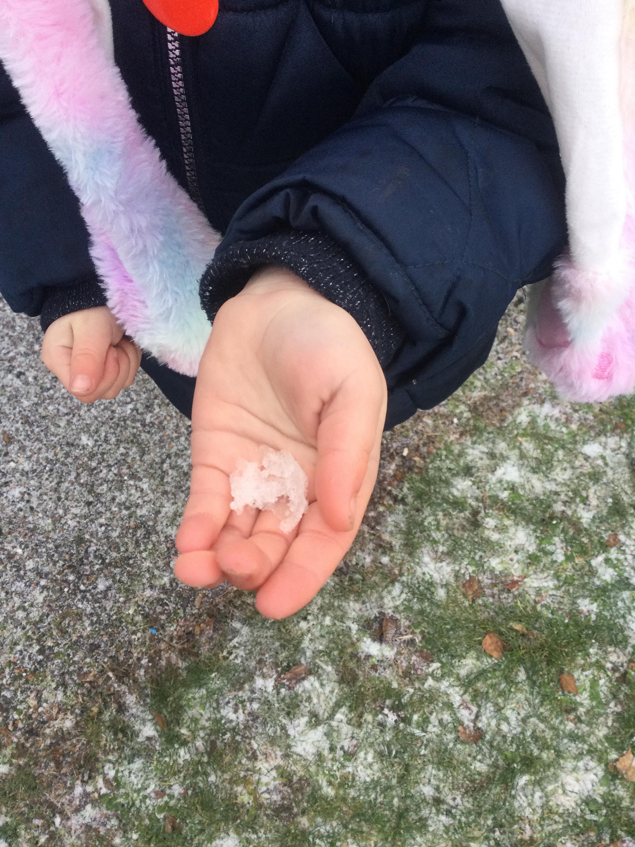 Wow, what an amazing learning opportunity we were presented with when we had a change in the weather! We all woke up to a very frosty day and we were so happy to see during our school day that the snow started to fall. We discussed the changes in the weather and the conditions of ice and snow it produced. We talked about the clothes we need to wear during Winter as we will be out in the cold weather and took the opportunity to go outside and experience the snow first hand. We enjoyed touching the snow, feeling the cold weather on our skin and tasting it by holding our tongues out upward to the sky as the snow was falling. We identified how the snow melted when it got warm in our hands and how it was slowly melting as the sun was coming out.